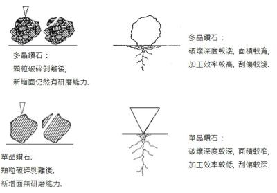 多晶鉆石粉是石墨和催化劑密封在生產(chǎn)管中,加以數(shù)千磅高壓快速爆炸沖擊,使石墨轉(zhuǎn)成多晶的鉆石。鉆石顆粒內(nèi)包含無數(shù)尺寸為20奈米微小的晶體,由于表面形成多晶微小粒子,因此能創(chuàng)造極佳的完工表面,研削速度快,提高生產(chǎn)效率。